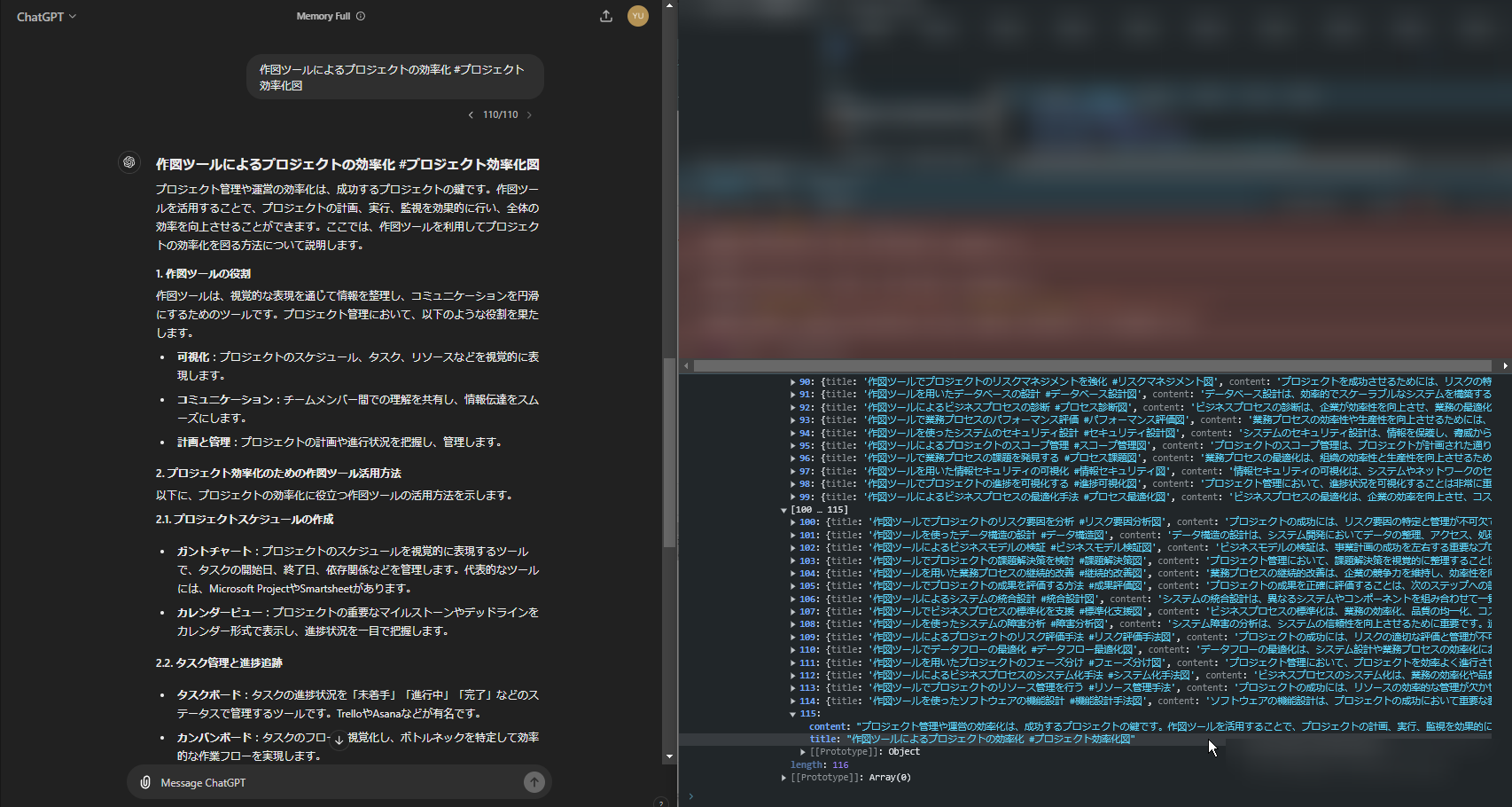 以上、ChatGPTの会話履歴をJavaScriptとChromeデベロッパーツールを使ってJSONで出力して任意の形に整形する方法でした。