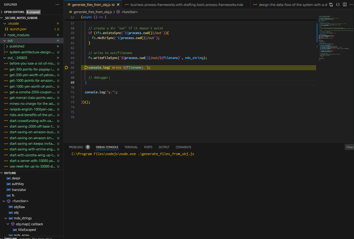 タイトルを英語に翻訳してファイル名とし、mdx形式のファイルで保存していっている動作: