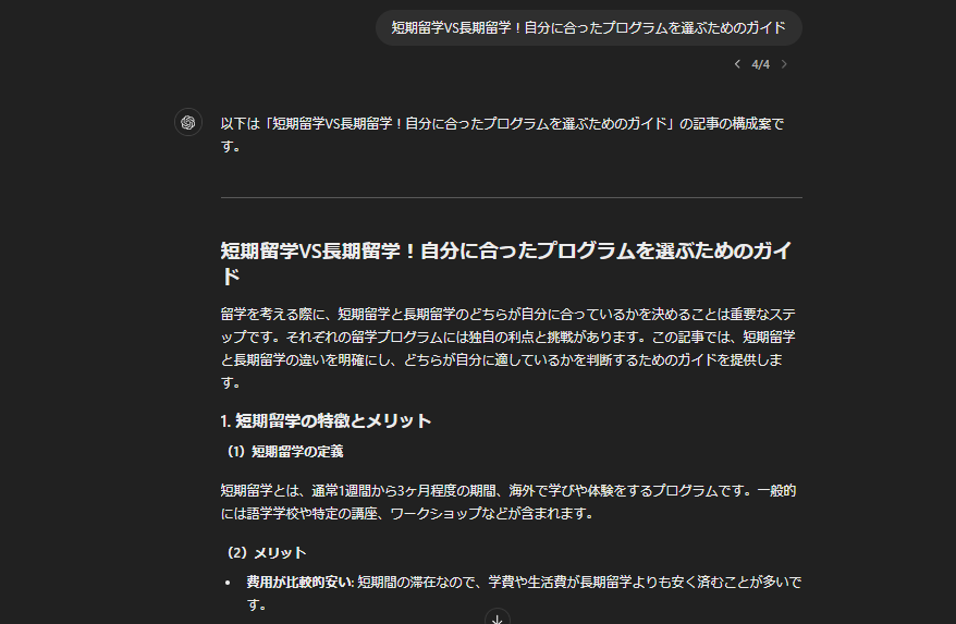 例えば以下のように、ChatGPTの生成結果は会話ごとでランダムなため、いつでも”##“のタイトルから始まるわけではありません。