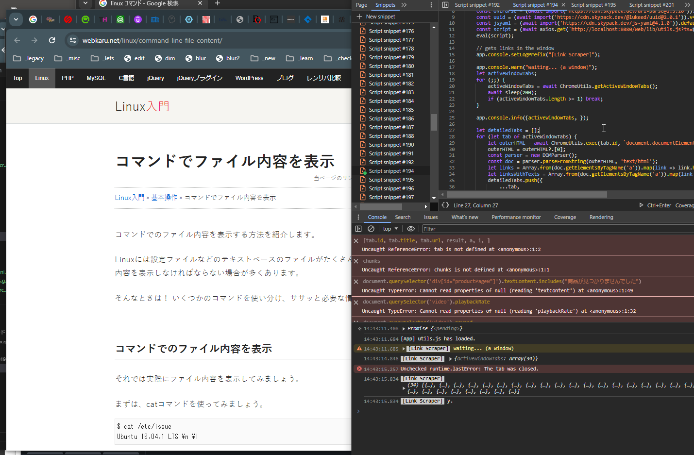 スクリプトが実行されると、アクティブなウィンドウ(一番全面にあるウィンドウ)の全てのタブの情報を自動で取得し、リンク抽出の処理も行った上でログをし終了します。