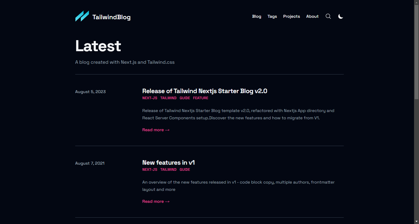 Github: timlrx/tailwind-nextjs-starter-blog / htthps://github.com/timlrx/tailwind-nextjs-starter-blog
